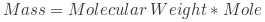 One mole of any substance has a mass equal to its atomic or molecular weight in grams. For example, one mole of carbon-12 atoms weighs 12 grams, while one mole of water (H2O) molecules weighs 18 grams (2 hydrogen atoms weigh 1 gram each, and 1 oxygen atom weighs 16 grams). This relationship between moles and mass is known as the molar mass.